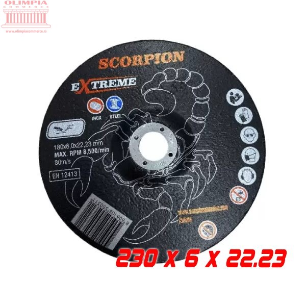 Scorpion je prepoznatljiv domaći brend koji nudi vrhunski odnos cene i kvaliteta. Ova brusna ploča je specijalno dizajnirana za agresivno brušenje i obradu metala, pružajući sigurnost i dugovečnost u radu.